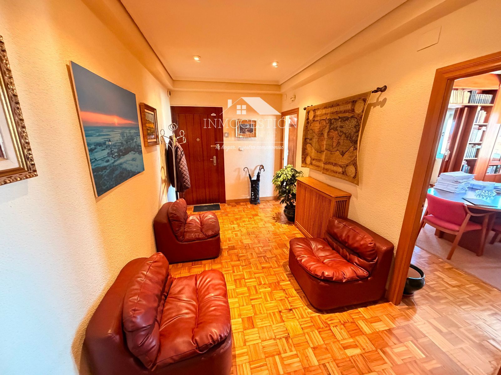 Desde su amplio recibidor, que da paso a un gran salón, ya se percibe la amplitud y elegancia de la vivienda. El salón es espacioso, cómodo y perfectamente distribuido, ideal tanto para la vida familiar como para recibir invitados.