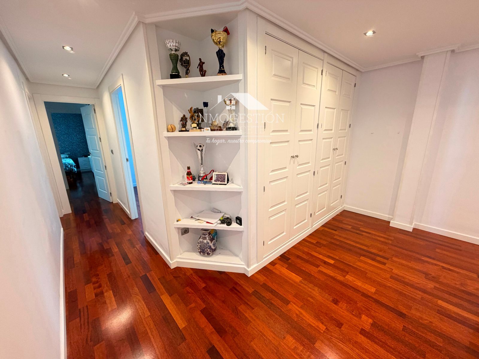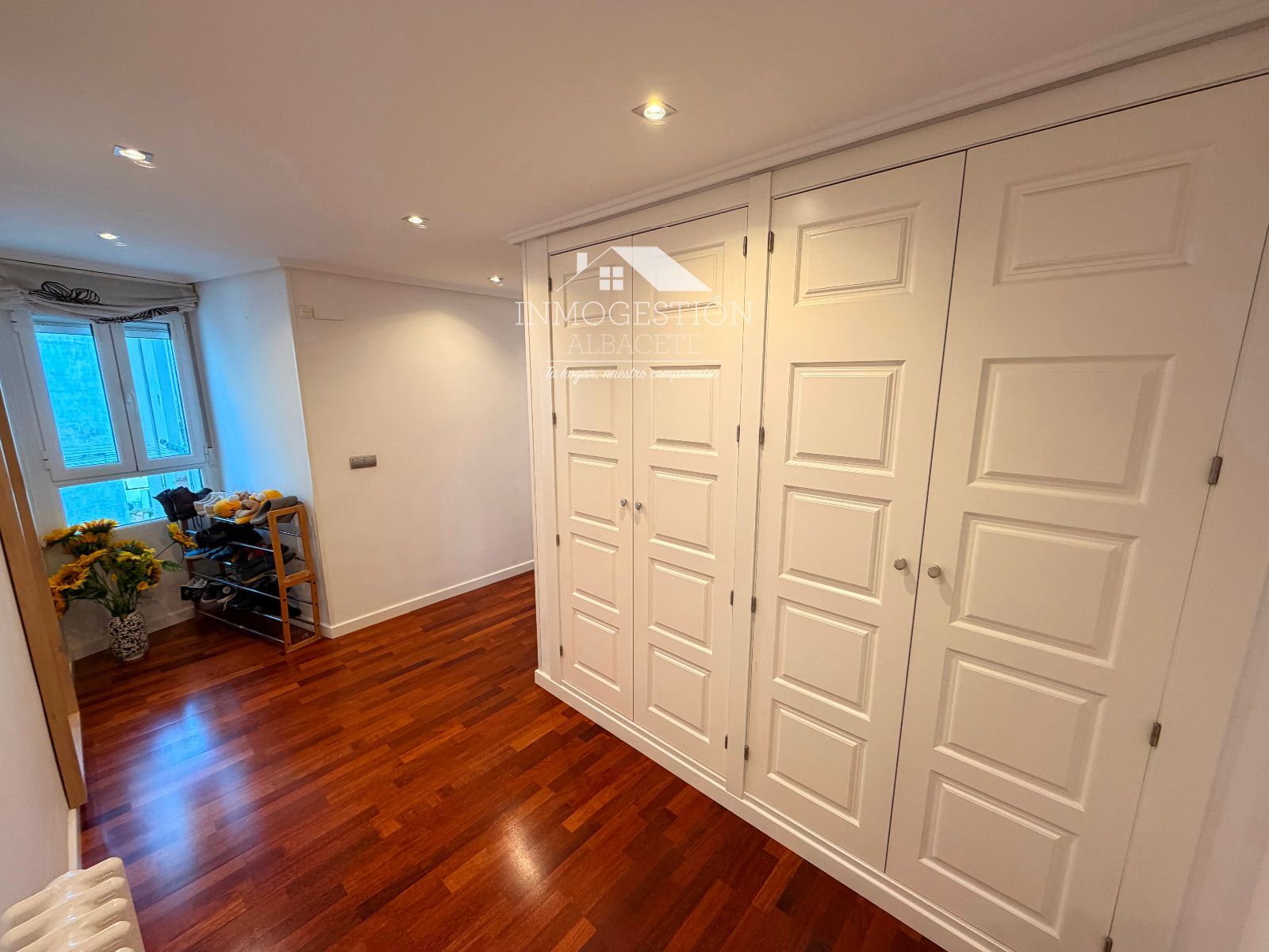 La vivienda cuenta con 4 dormitorios de generosas dimensiones, tres de ellos con armarios empotrados de gran capacidad, además de disponer de armarios empotrados adicionales en otras zonas de la vivienda, optimizando al máximo el almacenamiento sin renunciar al diseño. El dormitorio principal dispone de baño en suite, creando un espacio íntimo y exclusivo.